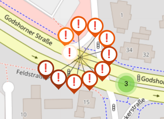 1️⃣4️⃣ Rad-Unfälle = 1️⃣1️⃣ Rad-Unfälle im Kreis + 3️⃣ Rad-Unfälle als grüner Punkt, gleich daneben ...