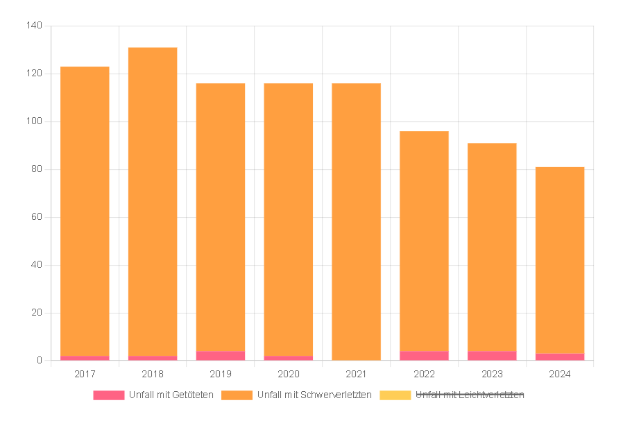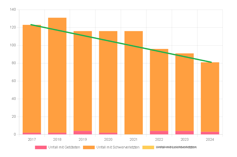 - 2024: 81 VZ-Unfälle (3 tödli. + 87 schwerv.)