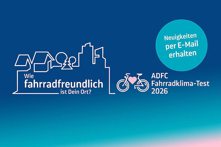 Vom 1. September bis zum 30. November 2026 sind Radfahrende in Deutschland wieder aufgerufen, die Fahrradfreundlichkeit ihrer Städte / Gemeinden bewerten: Der ADFC-Fahrradklima-Test (FKT) zeigt, wie zufrieden/unzufreden Radfahrende in Deutschland mit den Bedingungen fürs Radfahren vor Ort sind.