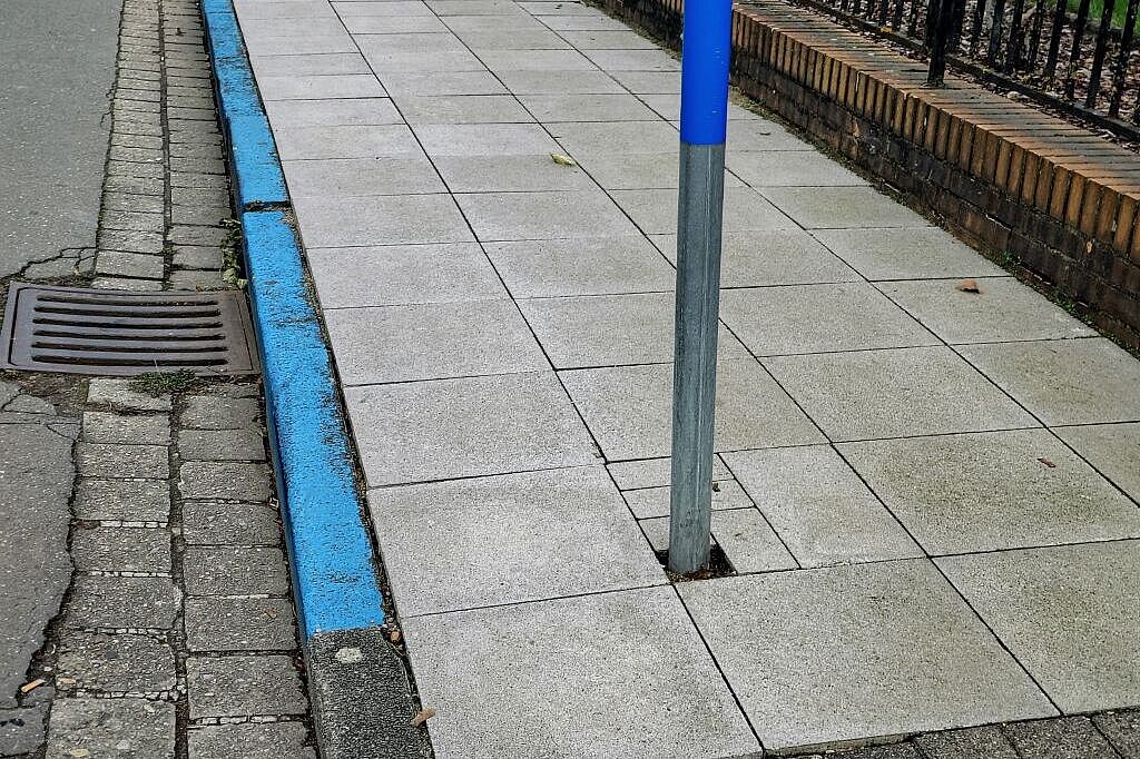 • Markant BLAU markiert über die gesamte Länge: Die Bordsteine …