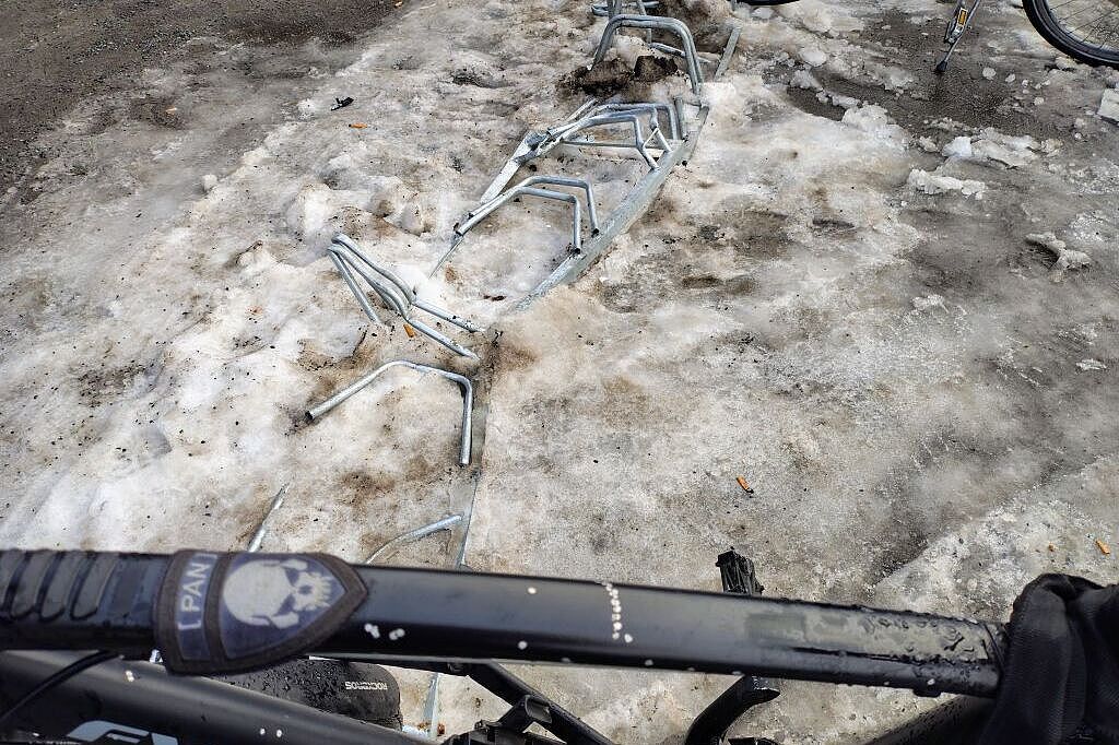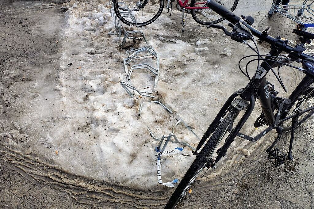 DAS ist hier hier wohl keine Frage, zum wiederholten Male: Der erneuerte Rad-Ständer vorm Einkaufszentrum hat ja nicht soooo lange gehalten.